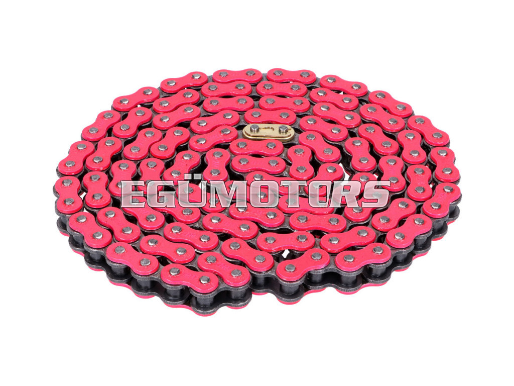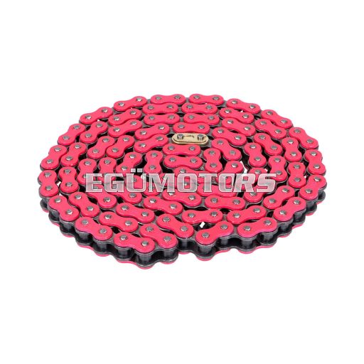 Szuper megerősített lánc 420-as osztással, 140 szemmel (420 1/2 x 1/4) piros színben.