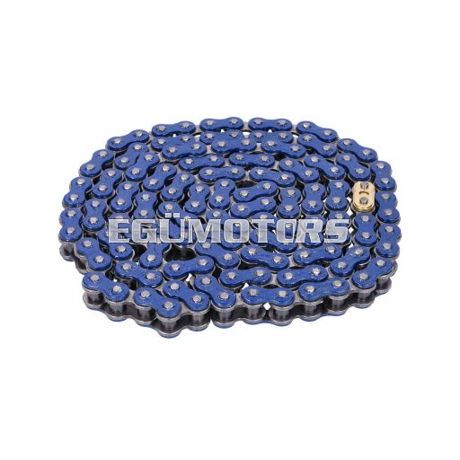 Szuper megerősített lánc 420-as osztással, 140 szemmel (420 1/2 x 1/4) kék színben.