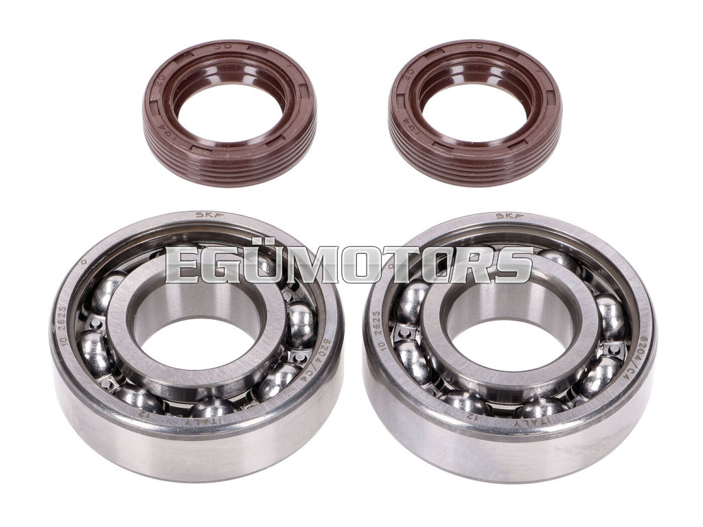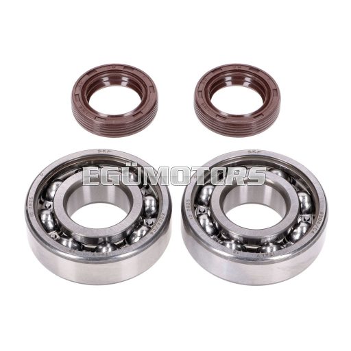 Naraku SKF főtengelycsapágy készlet, prémium FKM szimeringekkel, alkalmas Peugeot robogókhoz fekvő hengerrel, mint például Peugeot Ludix 50, Ludix Blaster LC, Jetforce C-Tech, Jetforce TSDI vagy Looxor 50.
