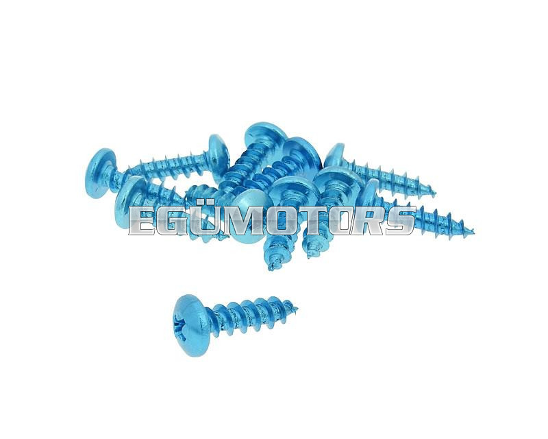 A csomag 12 darab kék anodizált csavart tartalmaz, 20 mm hosszú, M6-os menettel.