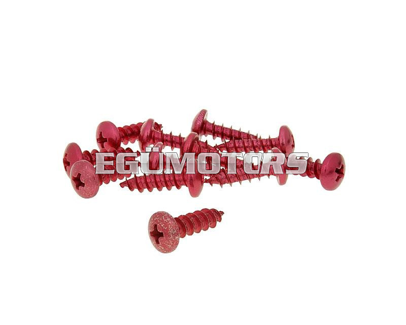 A csomag 12 darab piros anodizált csavart tartalmaz, 20 mm hosszú, M6-os menettel.