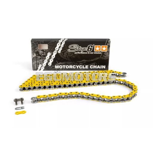 Kiváló minőségű Stage6 HQ (High Quality) motorkerékpár lánc. Többféle mutatós, feltűnő színben kapható, optikai tuningnak is kitűnő!